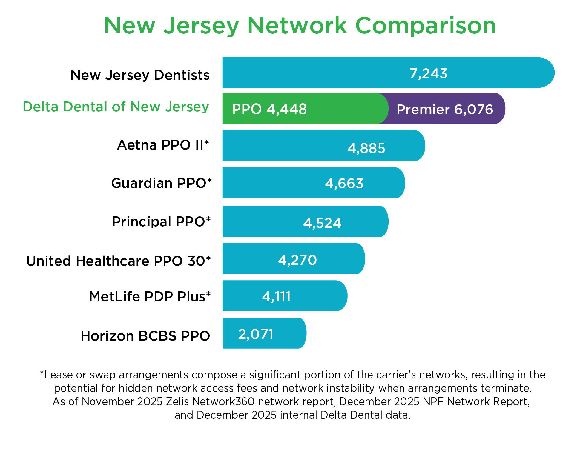 1National stat from Delta Dental Plans Association; NJ stat based on number of licensed participating dentists.